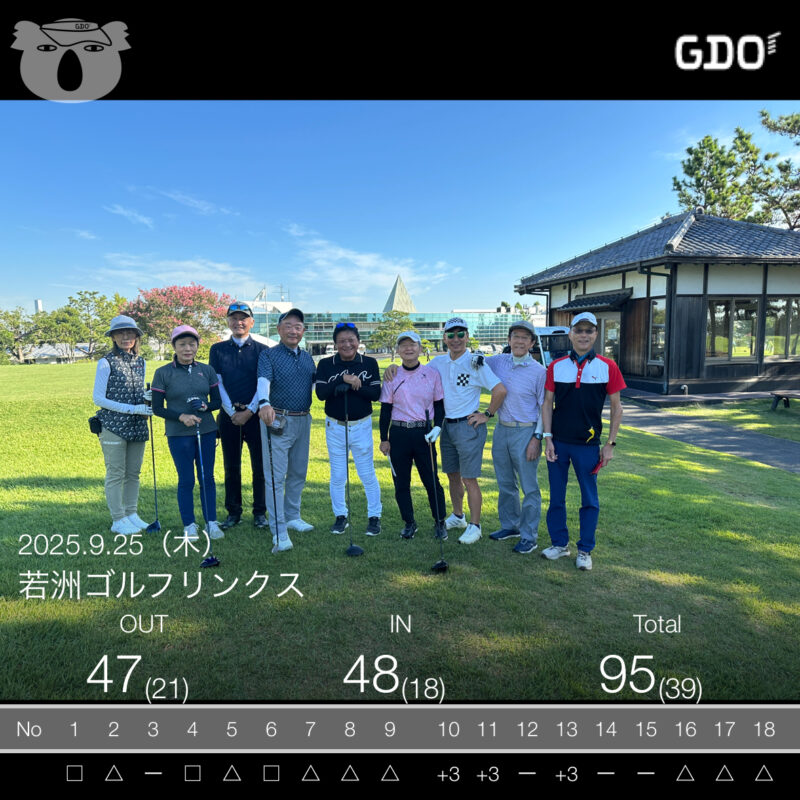 9/25 10組ゴルフ 若洲GL 95 今のところ最高気温28℃で晴れなのでまあまあいい感じ。