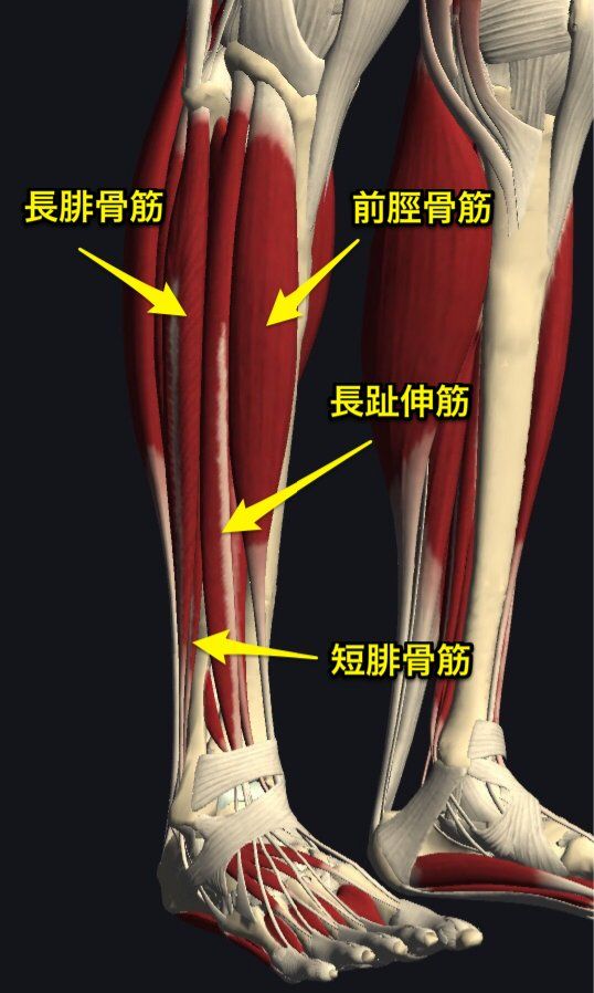 前回の河口湖のトライアスロンでつま先あげて引くペダリングやったらバイクでスピード出たけど、ランに入る前に脚が終わったのはここの前脛骨筋を使いすぎたからです。