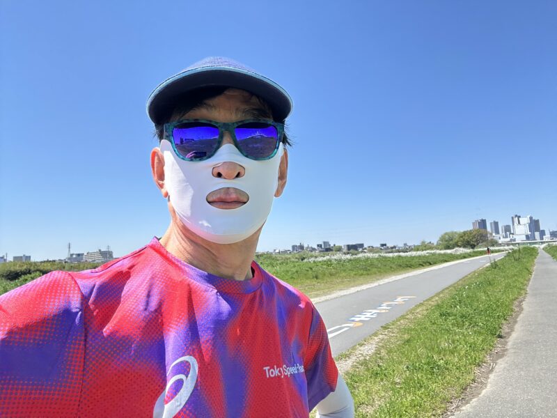 4/8 最近、このファイスマスクをして走っています。これだと日焼け対策ばっちりですね。暑くもないし、夏は、水に浸して使うといいかも。 子供に笑われるのと、犬にほえられるのが玉にきずですが。